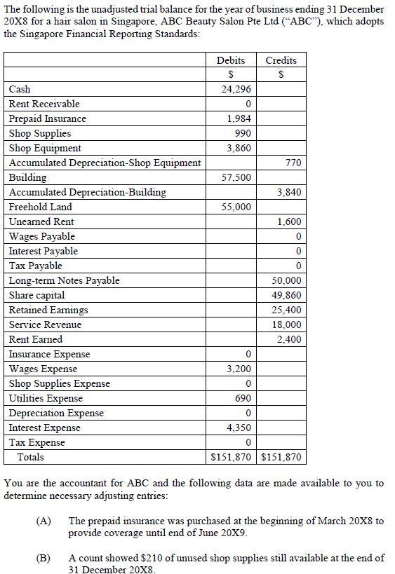 Solved The Following Is The Unadjusted Trial Balance For The Chegg Com