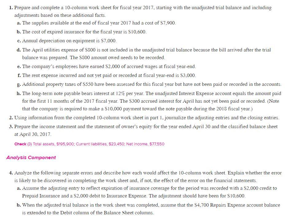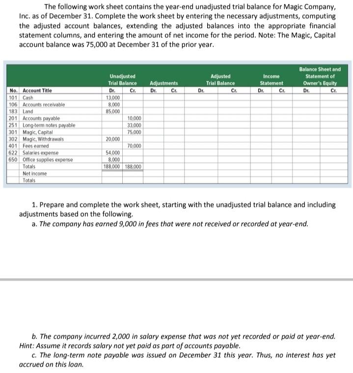 Solved The Following Work Sheet Contains The Year End Chegg Com