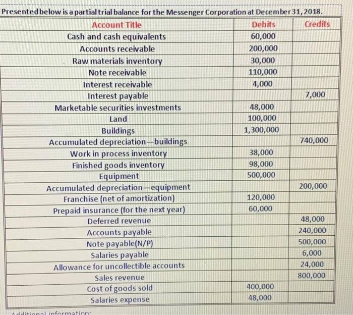 Solved Presented Below Is A Partial Trial Balance For The Chegg Com