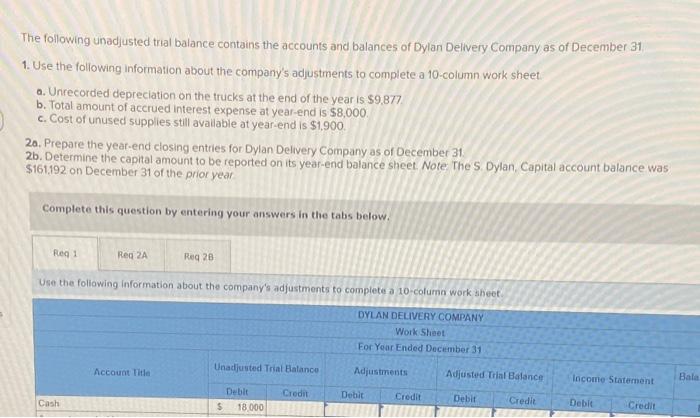 Solved Question 1 The Unadjusted Trial Balance As Of Chegg Com